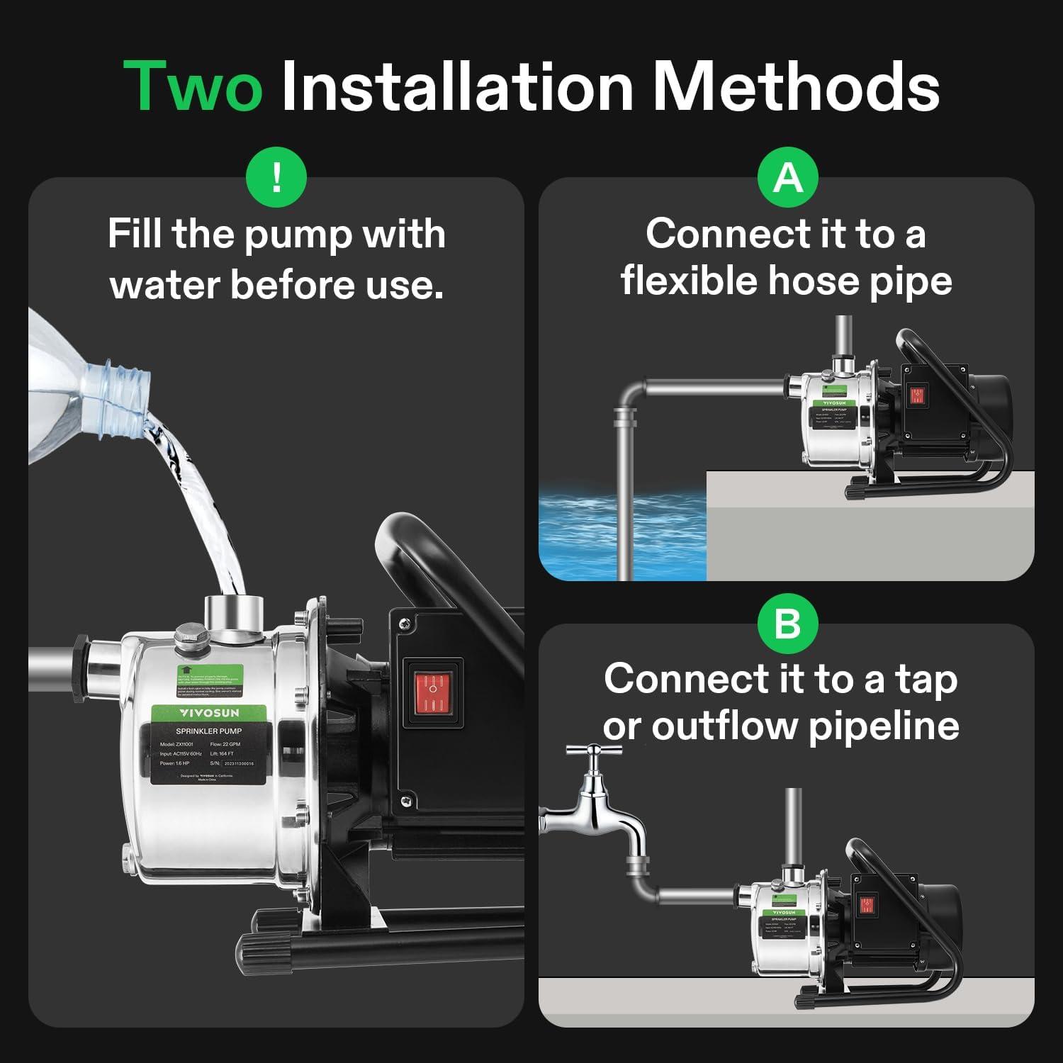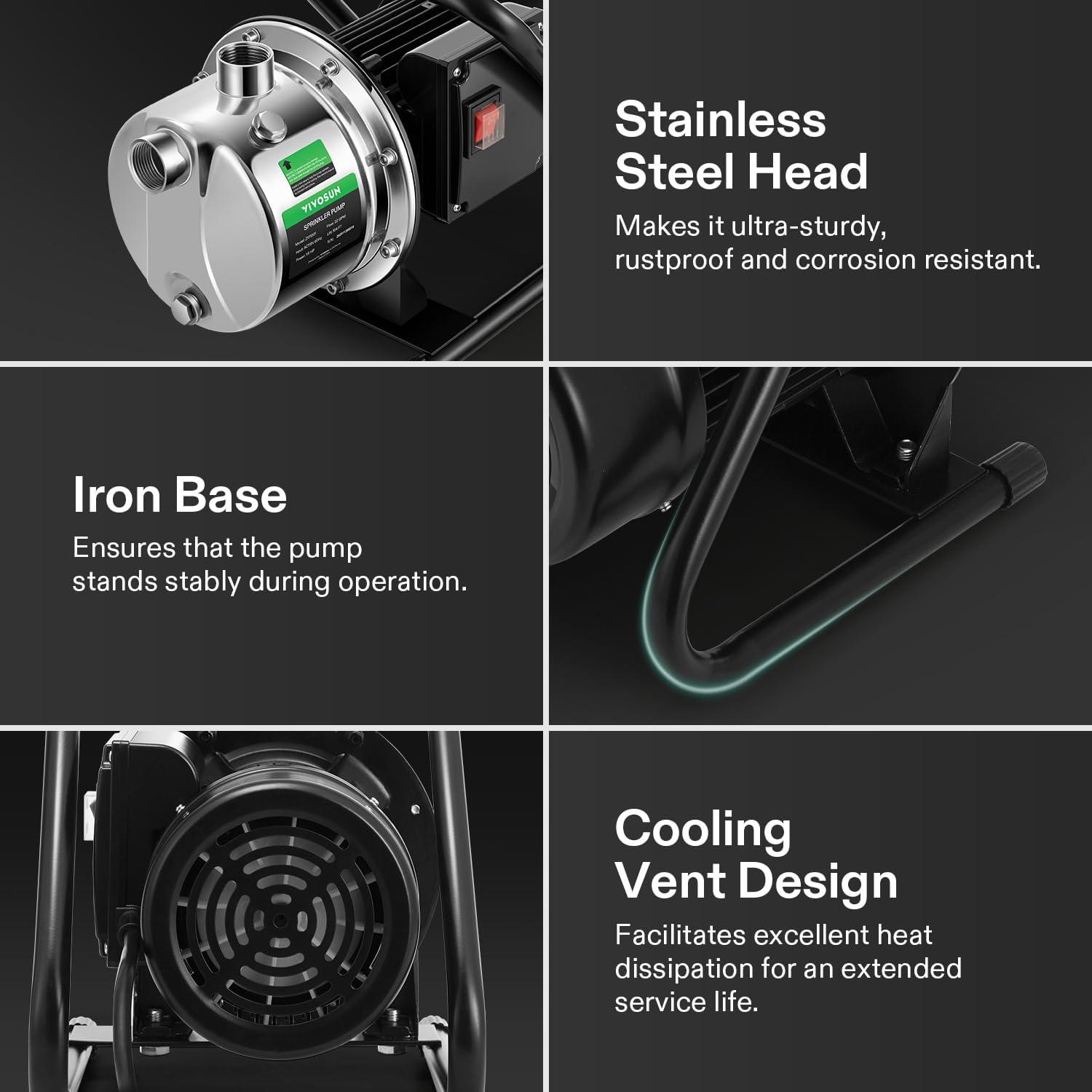 Overheat & Overload Protection: Equipped with overheat and overload protection, this pump prevents motor damage for safe, extended use 【Note: Always fill the pump head with water before use!】