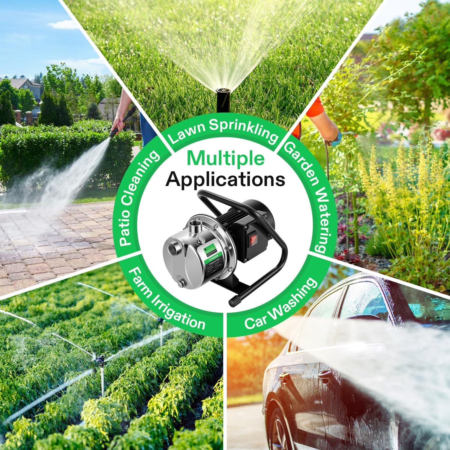Multiple Applications: Connect this pump to a hose to drain water from shallow wells, ponds, or rain barrels, or connect it directly to a tap or outflow pipeline; Perfect for water transfer, lawn sprinkling, garden watering, farm irrigation, and patio cleaning