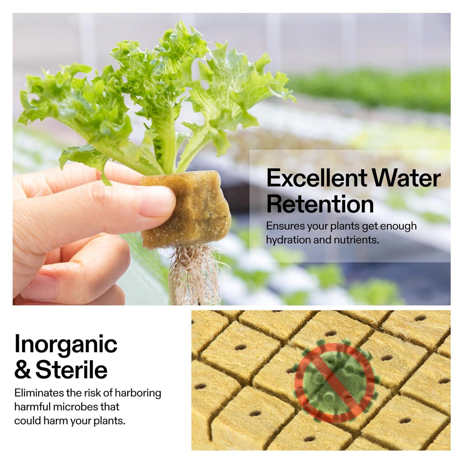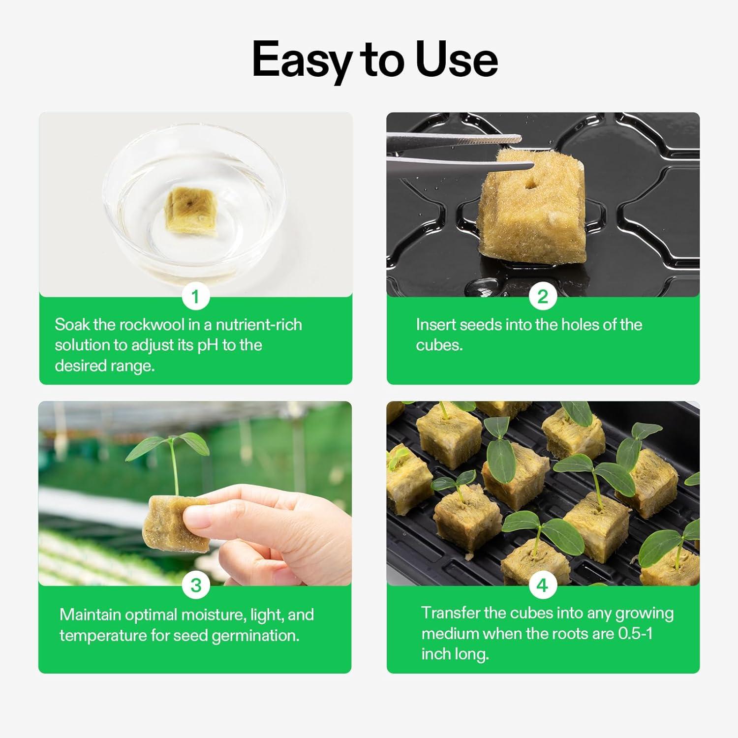 Easy to Use & Observe: These light and fluffy rockwool cubes are easy to cut to any size; Each cube has a hole for your seeds or cuttings, and you can transfer the cubes to any medium when the roots develop; It is also easier to observe the growth on one sheet