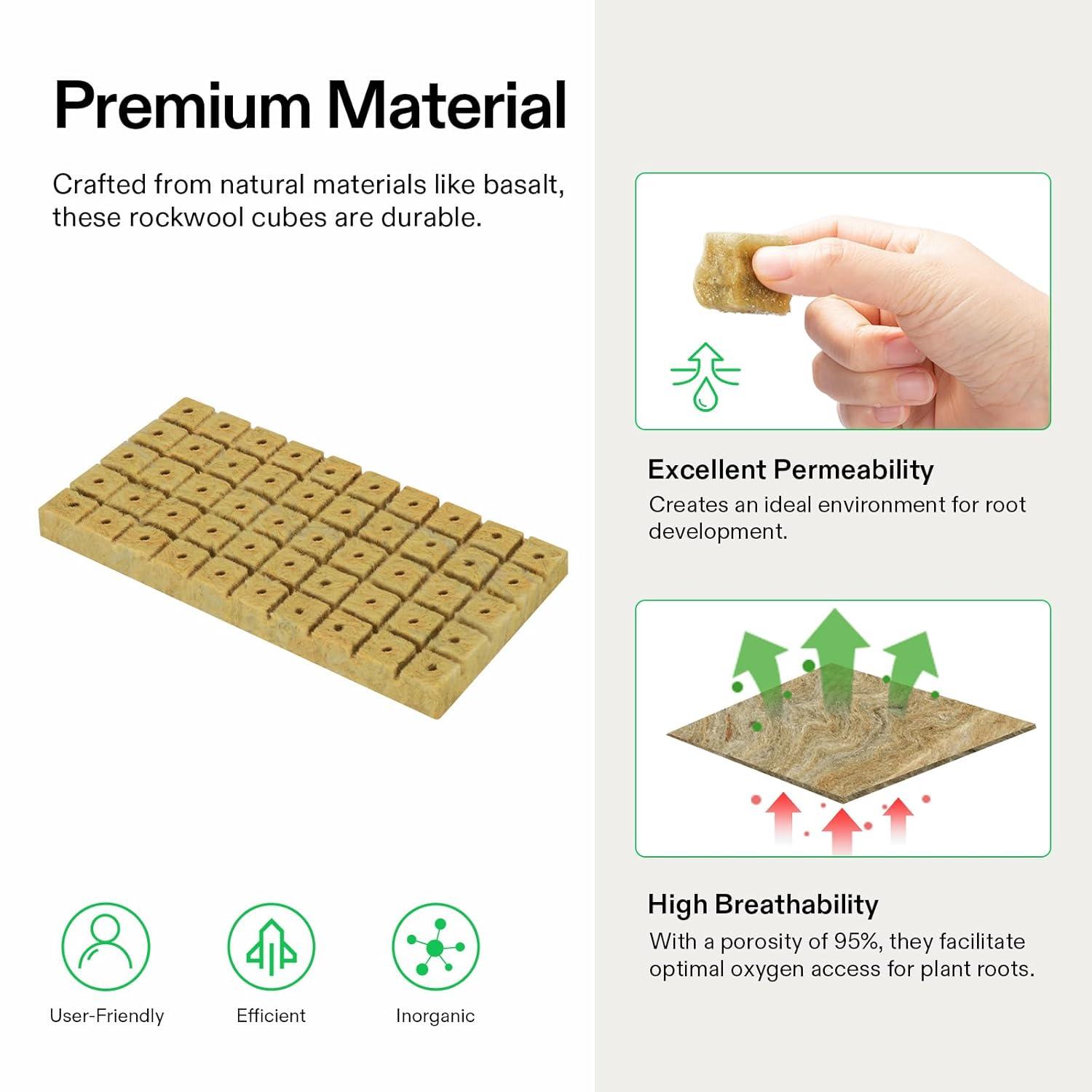 Easy to Use & Observe: These light and fluffy rockwool cubes are easy to cut to any size; Each cube has a hole for your seeds or cuttings, and once the roots develop, you can effortlessly transfer the cubes into any growing medium. The flat format also simplifies observing growth progress.