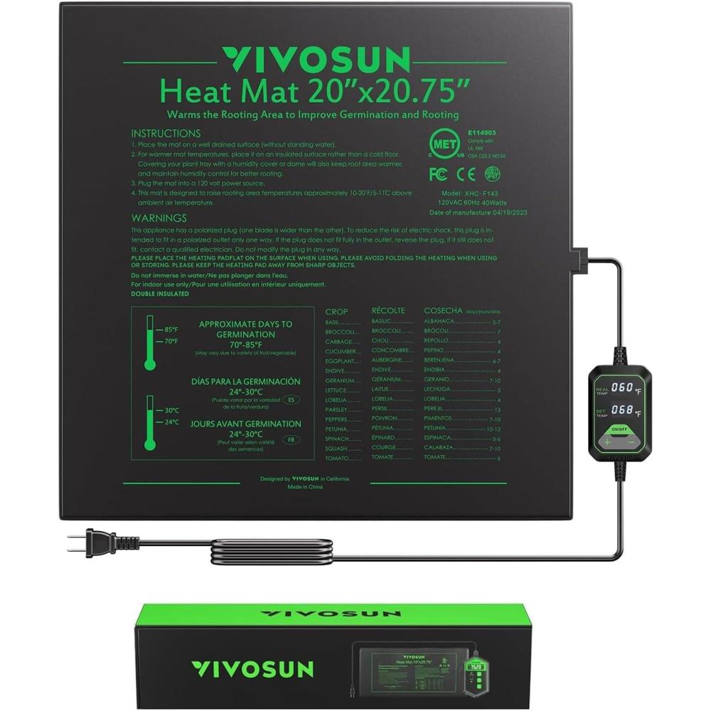 VIVOSUN 10″x20.75″ Seedling Heat Mat with Built-in Temperature Controller, UL & MET-Certified Waterproof Plant Heating Pad for Germination, Hydroponics, Brewing, Breeding, and Greenhouses(20″x20.75″)