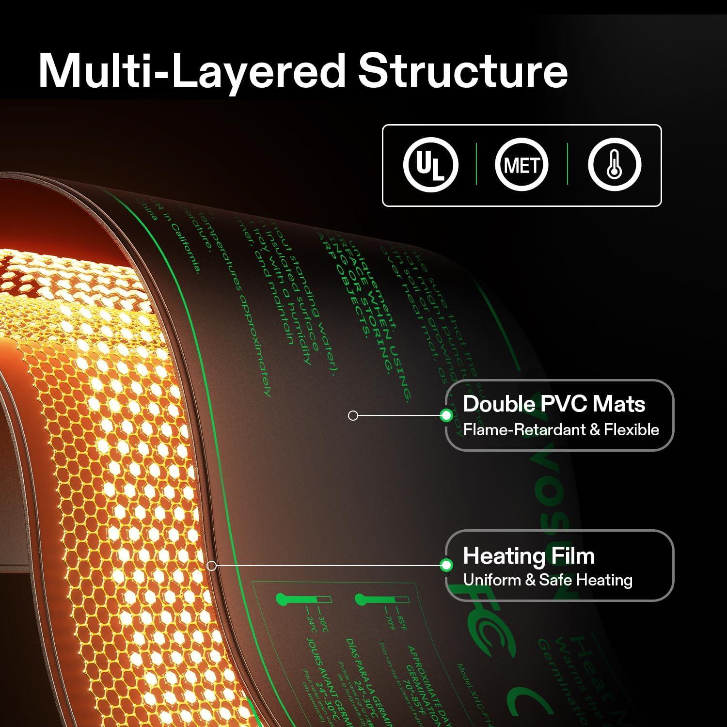 Even Heating in a Larger Heating Area: This heating pad uses advanced far-infrared heating technology to provide consistent and even heat; This technology expands the heating area in order to create more optimal conditions for accelerating plant growth; The durable, reinforced heating film comes with double insulation to ensure that the heat will not scorch the roots