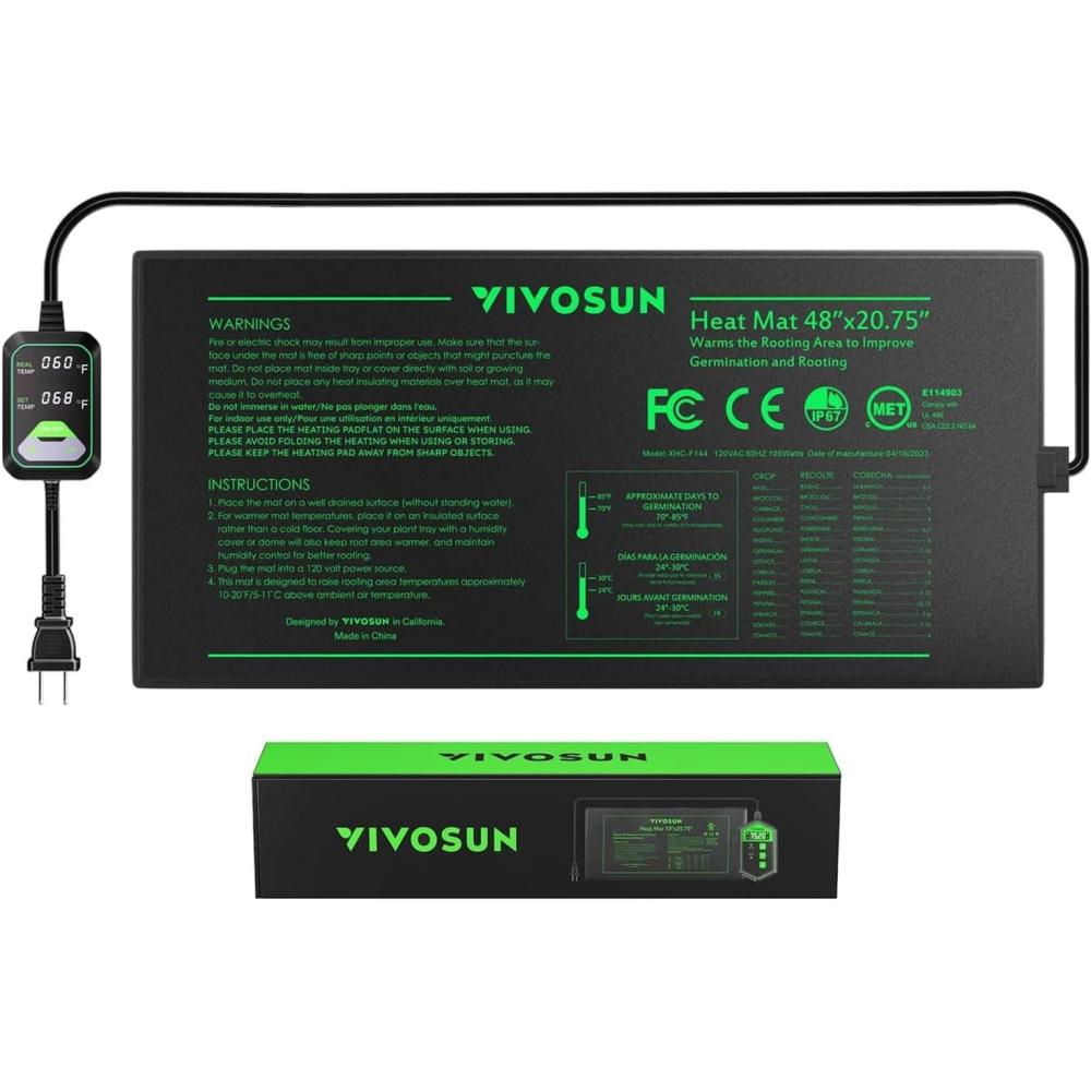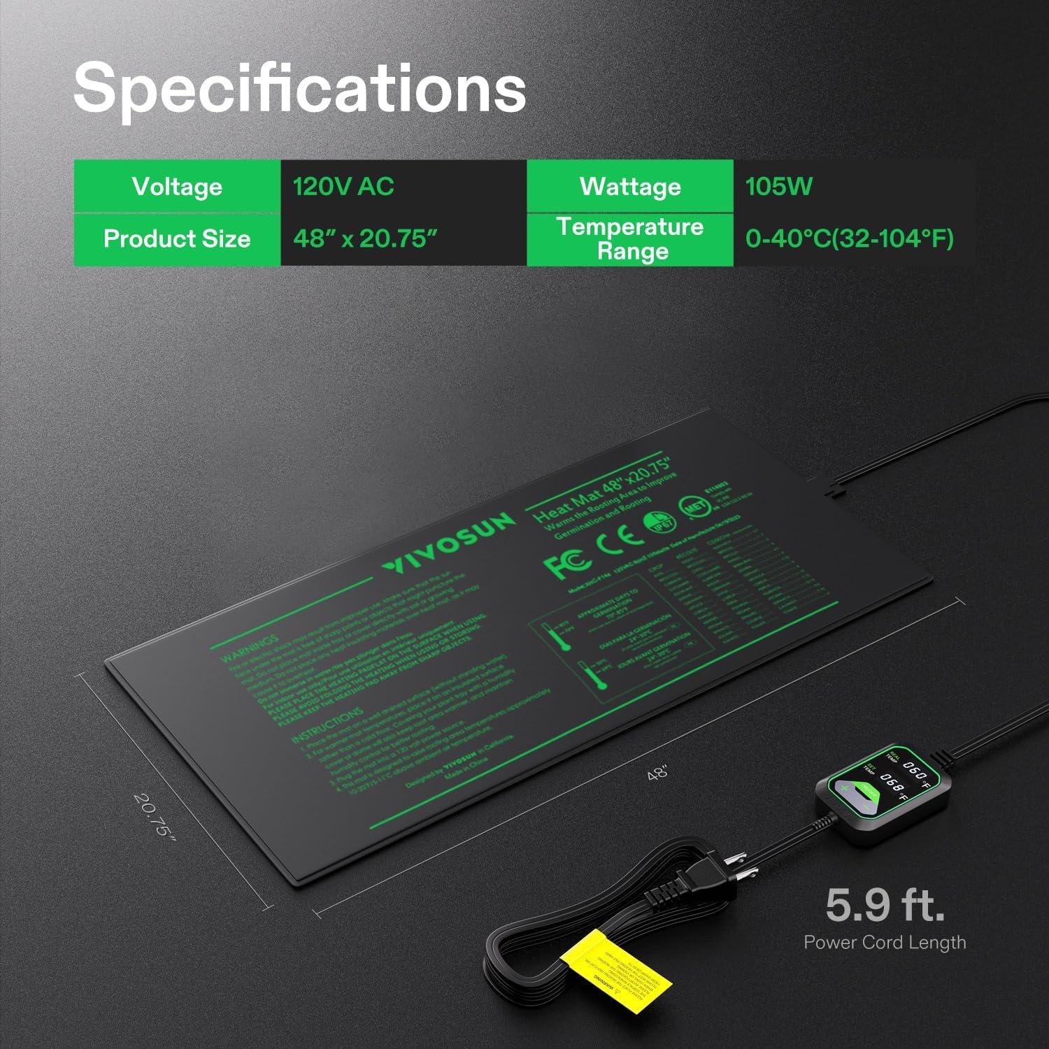 Easy to Use and Store: To use it, just flatten and place it under your seedling tray, and then plug the power cord into a standard 120V outlet to start heating; The digital controller has a 3-button interface, making the pad easy to operate and calibrate; The heat mat is stretchable and flexible, so it’s easy to fold and store without taking up much space