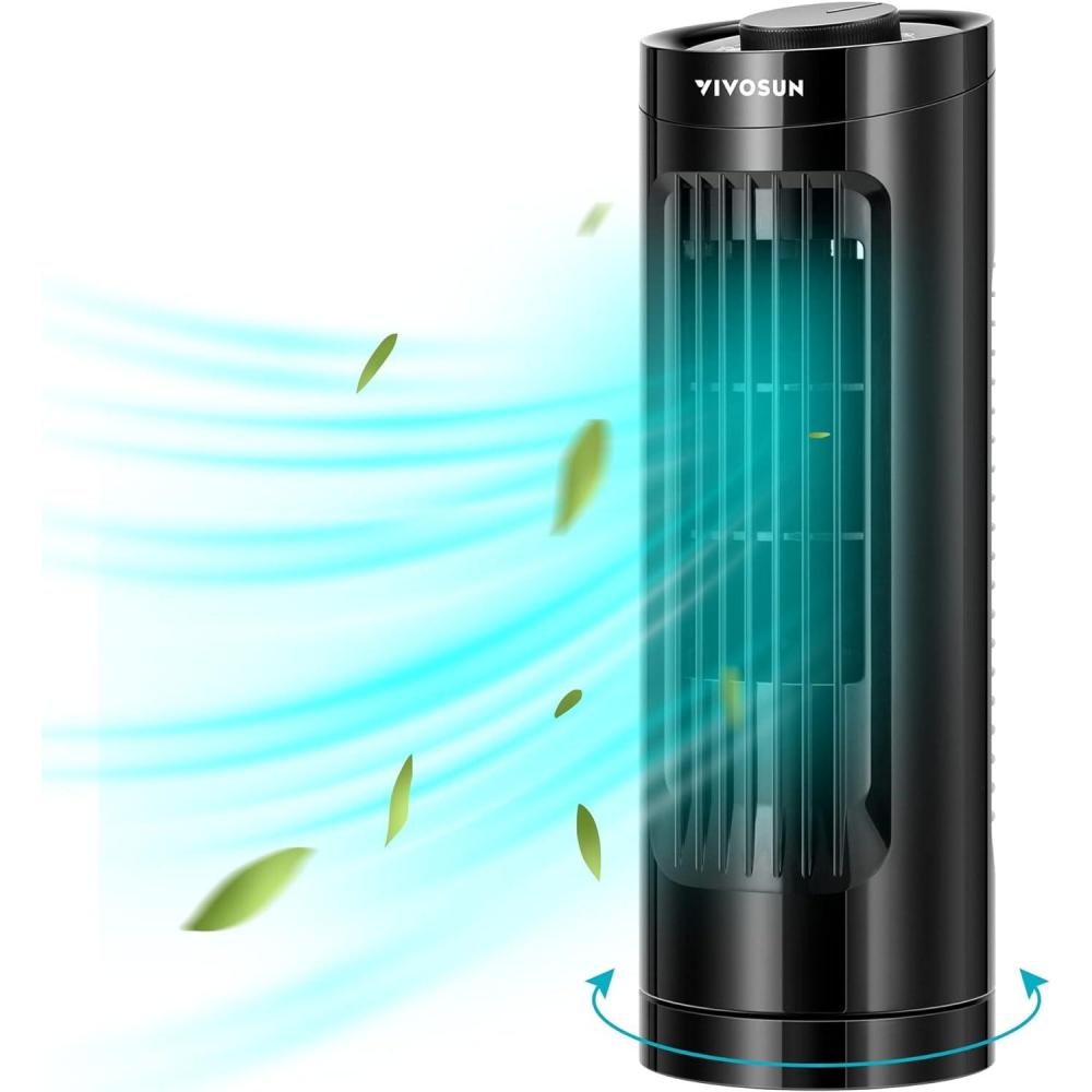 VIVOSUN 13” Tower Fan, Bladeless Desk Fan with 3 Speeds and 70° Oscillation, Portable and Compact, Quiet Cooling Fan for Home and Office, White(Black)