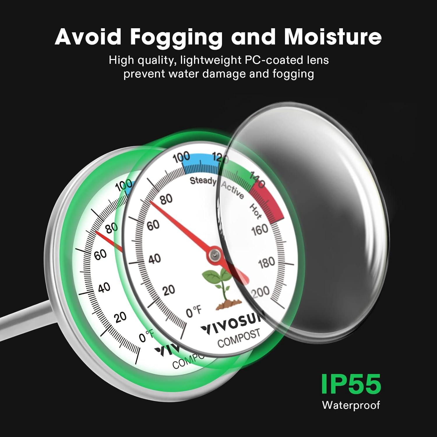 Accurate & Clear Reading: IP55 waterproof PC-coated lens is sealed to keep out moisture and avoid fogging for easy & clear reading; Only ± 2°F accuracy so you know your compost pile’s true condition and can optimize accordingly