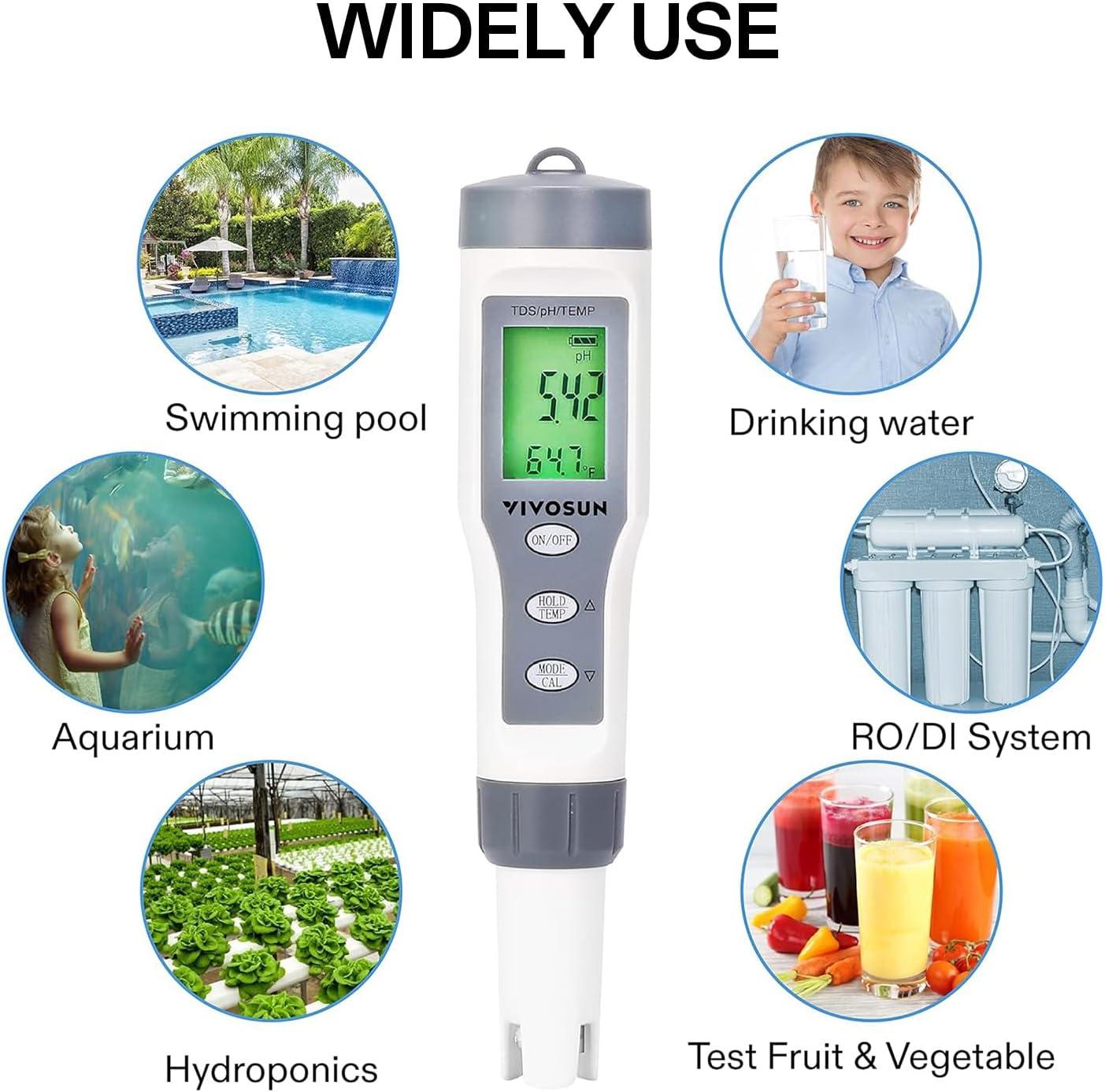 Multiple Uses: Pocket-sized and multi-functional, the Vivosun pH tester is ideal for daily use, to add to water testing kits for drinking water, or as a gift for family and friends