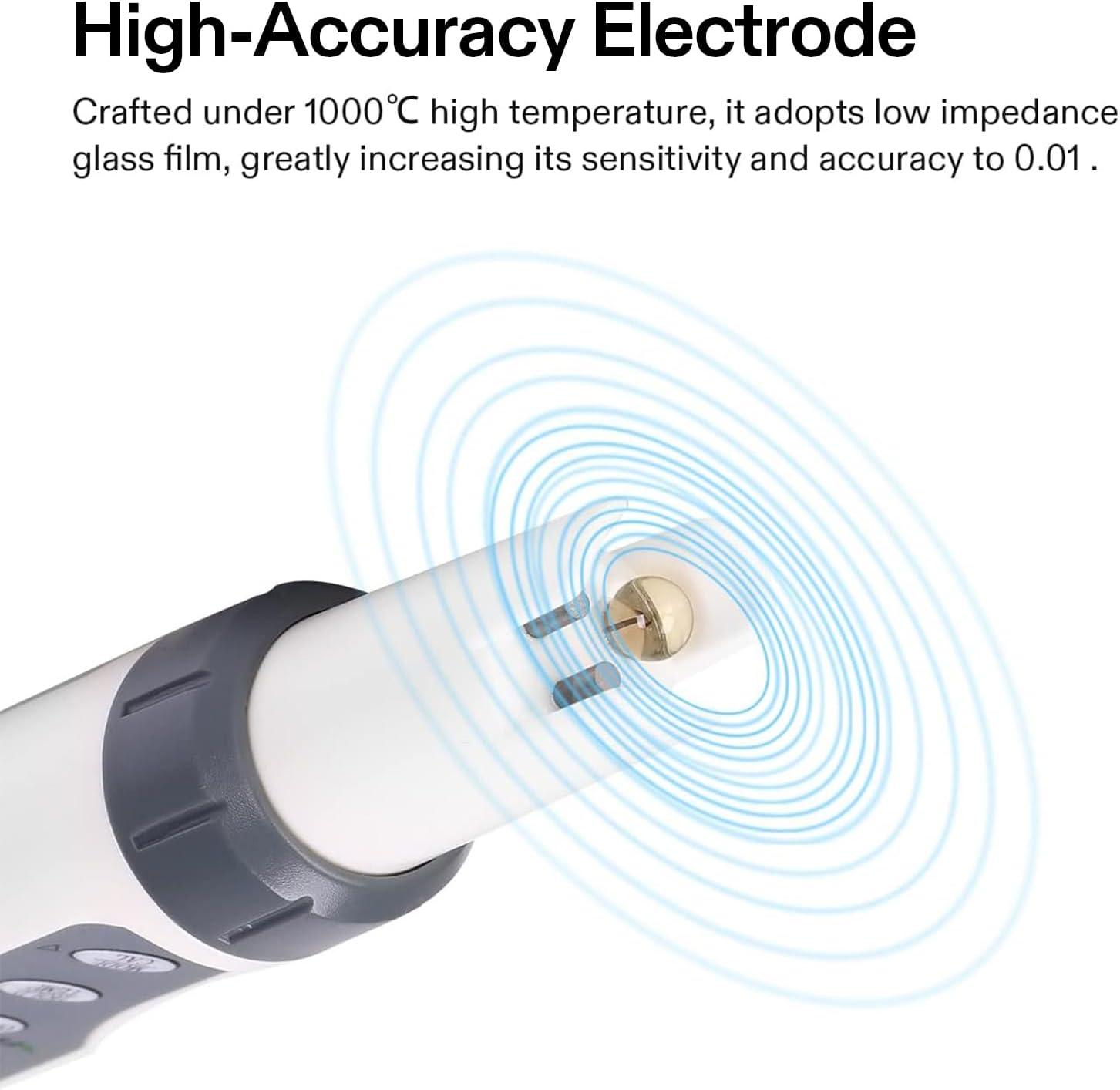 High Accuracy: Highly sensitive probe gives you a full measurement range of 0-14 pH, 0.01 pH resolution; pH tester digital green backlit display ensures you can read the measuring results under any conditions