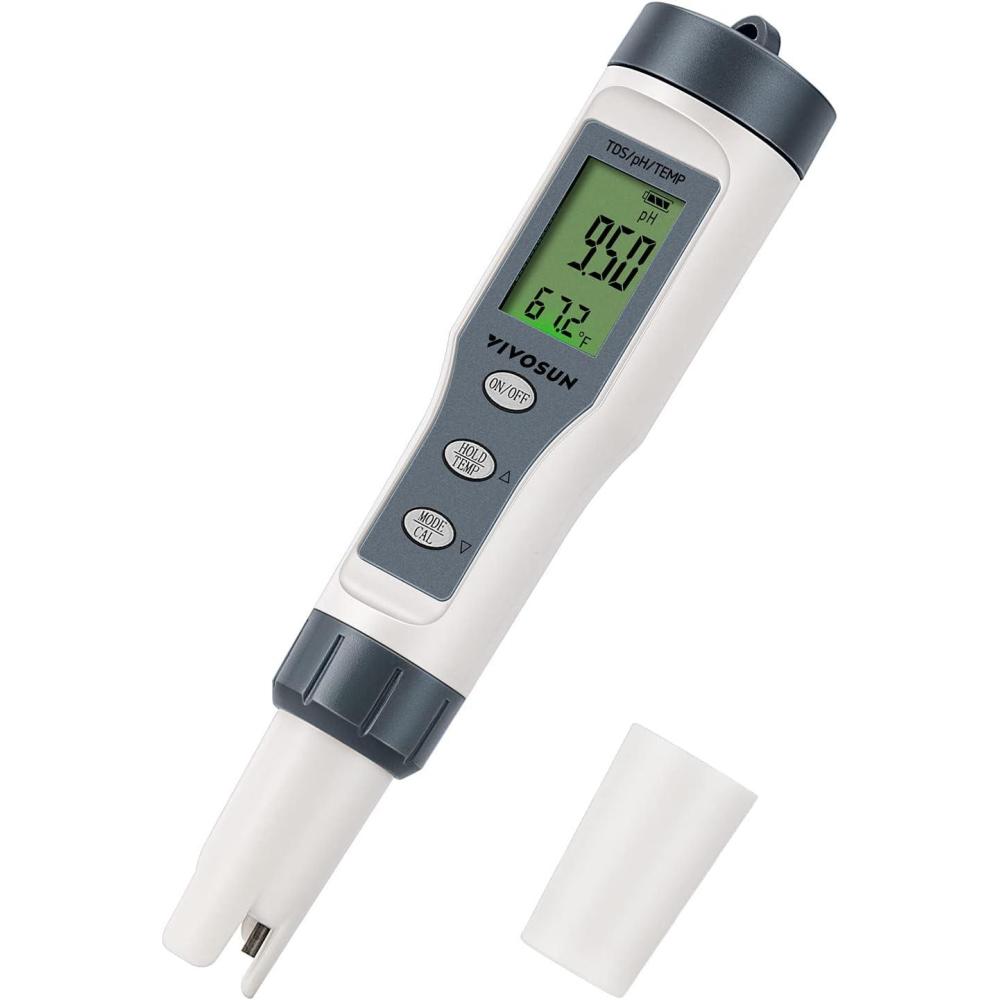 VIVOSUN 3-in-1 Digital pH Meter with ATC, ±0.1 pH Accuracy Water Quality Tester, 0-14.0 pH Measurement Range for Hydroponics, Household Drinking, Pool and Aquarium(Gray)