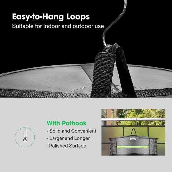 Ventilated & Heat-absorbed: Made of nylon mesh, the dryer makes sure the excellent airflow within; Also, the black nylon can absorb the heat from sunlight perfectly, which will help to realize the drying function