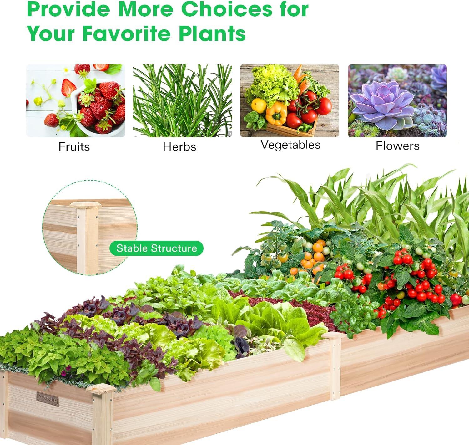 Sturdy Fir Wood: The garden bed is made of durable fir wood that is weather-resistant; The sturdy structure prevents the planter box from deforming and sagging over time, allowing it to last longer in harsh weather; Additionally, the smooth surface provides comfort and prevents scratches from wood chips