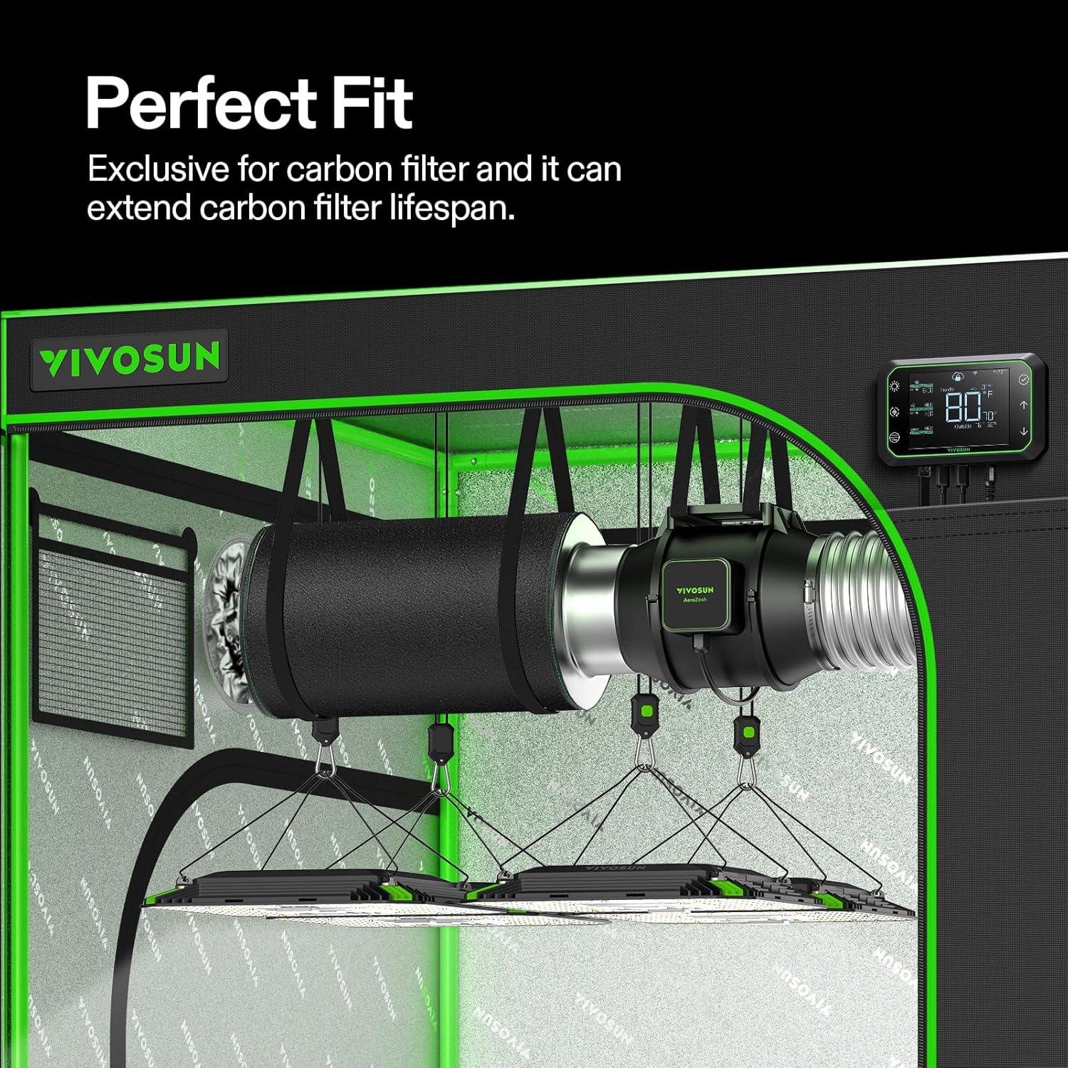 VIVOSUN 4 Inch Prefilter for 4″ Carbon Filter, White, 9.84″ Long(Black)