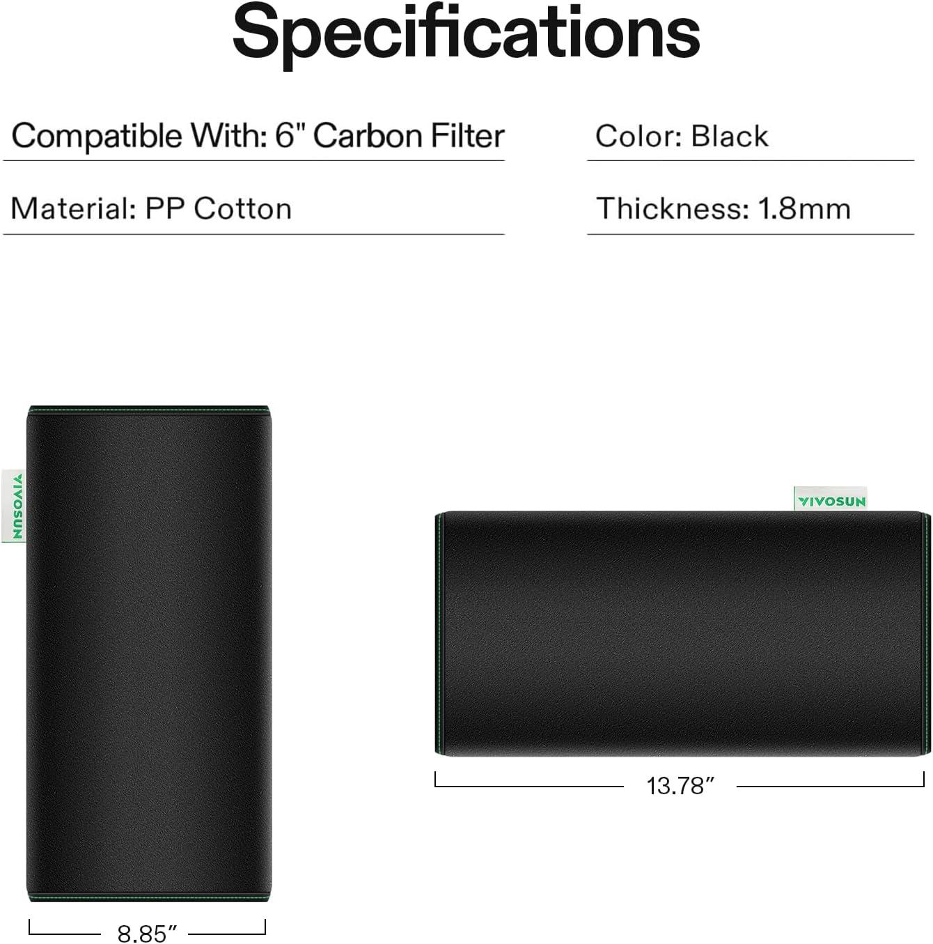 VIVOSUN 4 Inch Prefilter for 4" Carbon Filter, White, 9.84" Long(Black)