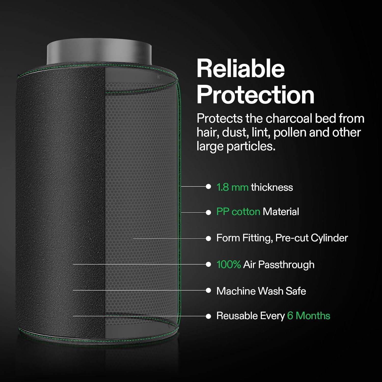 Ideal Compatibility: Filtrates larger particles from the air, preventing them from getting into the carbon filter and causing blockages, extending the lifespan of carbon filter; Available in a variety of sizes to meet the needs of different sizes of carbon filter
