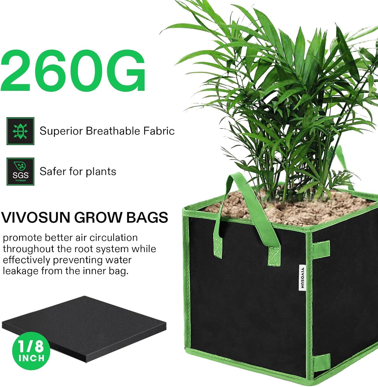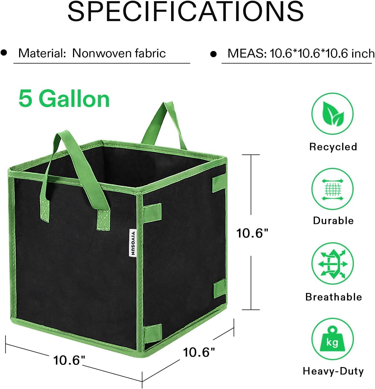 VIVOSUN 5 Pack 3 Gallon Square Grow Bags, Thick Nonwoven Cubic Fabric Pots with Handles for Indoor and Outdoor Gardening(7 Gallon)