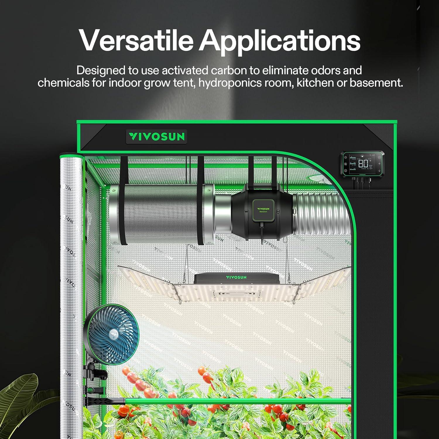 Versatile Applications: The detachable pre-filter cloth blocks 99% particles to keep the filter clean; Effective to eliminate odors and gaseous compounds for indoor grow tent, hydroponics room, kitchen or basement