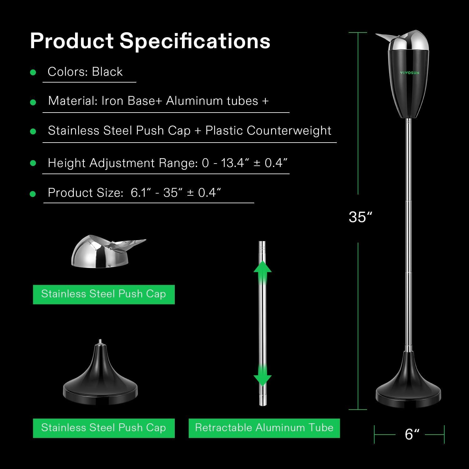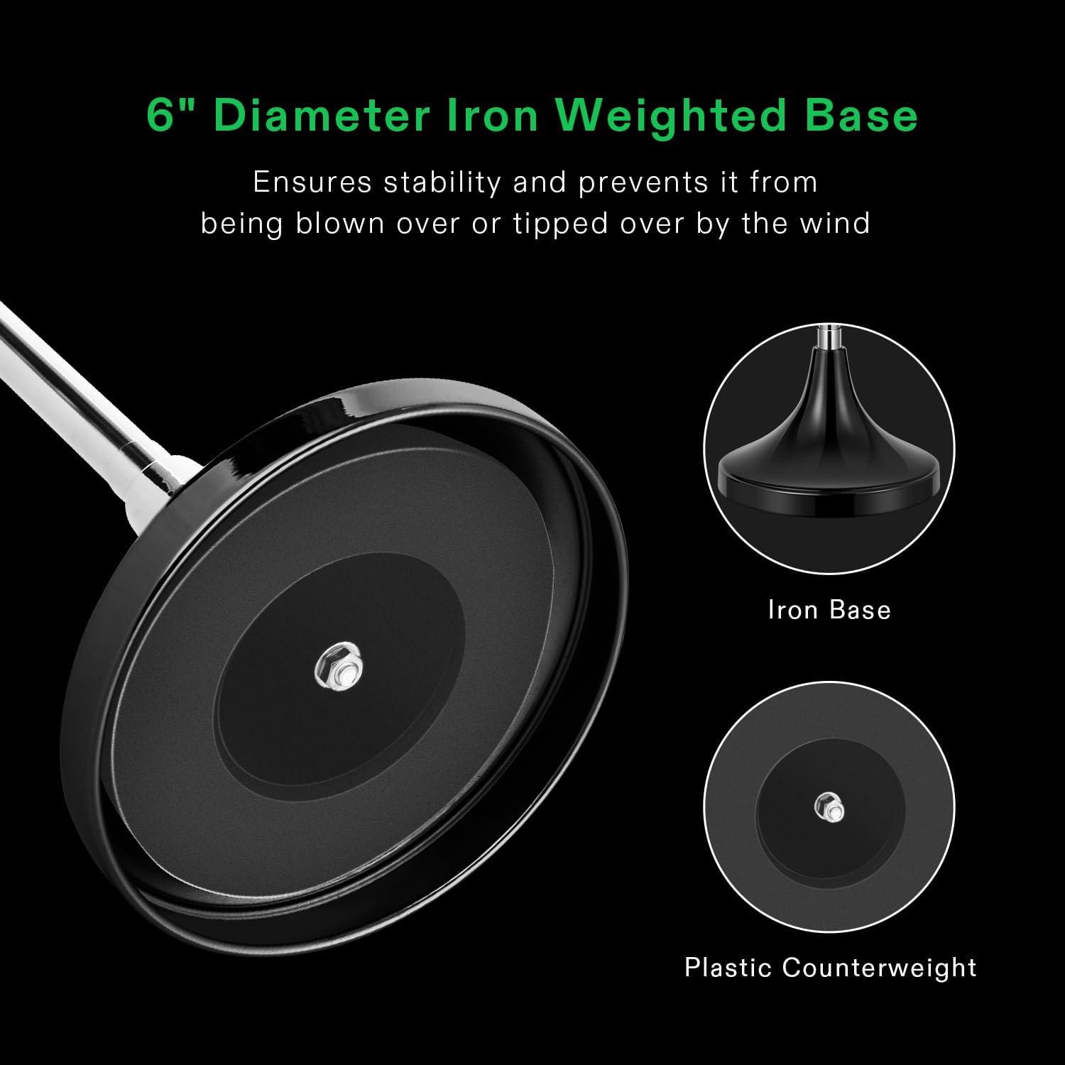 Premium Materials: Aluminum adjustable pole with stainless steel cover to protect against rust and weather; 6″ diameter iron weighted base ensures stability