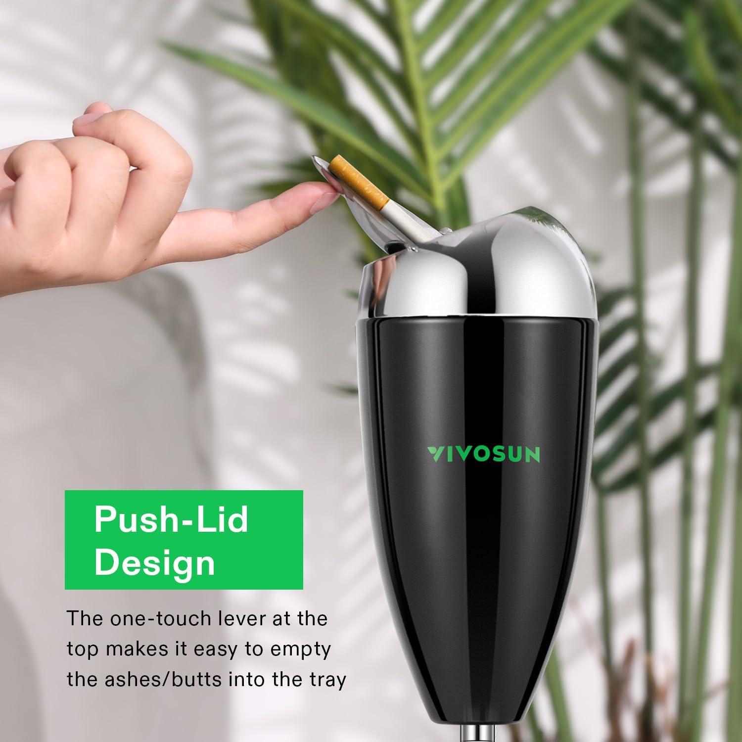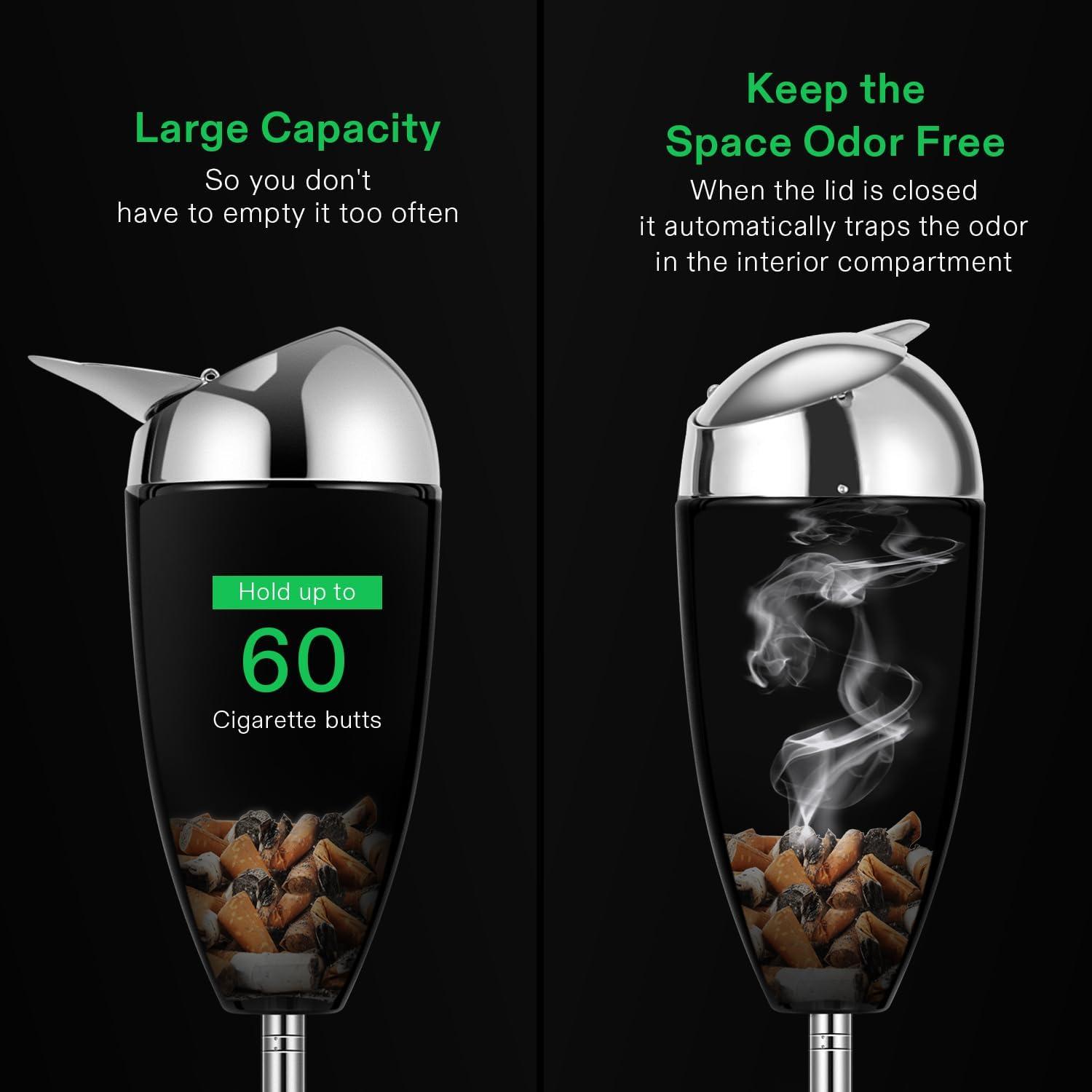 Push-Lid Design: The one-touch lever at the top makes it easy to empty the ashes/butts into the tray; When the lid is closed, it automatically traps the odor in the interior compartment