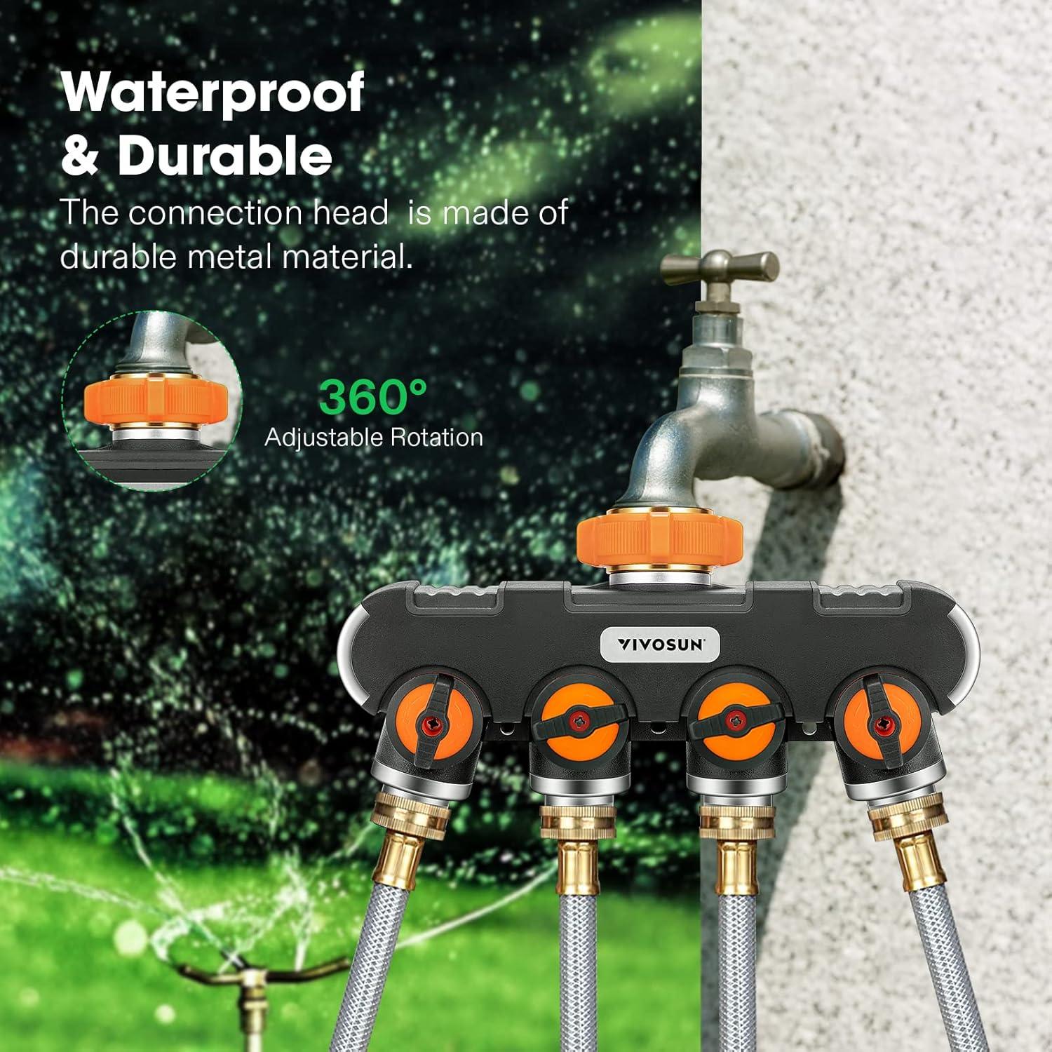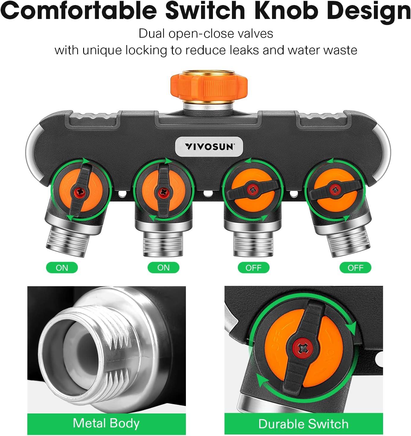 VIVOSUN Garden Hose Splitter 2 Way Heavy Duty, Upgraded Highly Durable Dual Water Hose Connector, Faucet Adapter with Comfortable Rubberized Grip for Drip Irrigation, Lawns(4 Way)