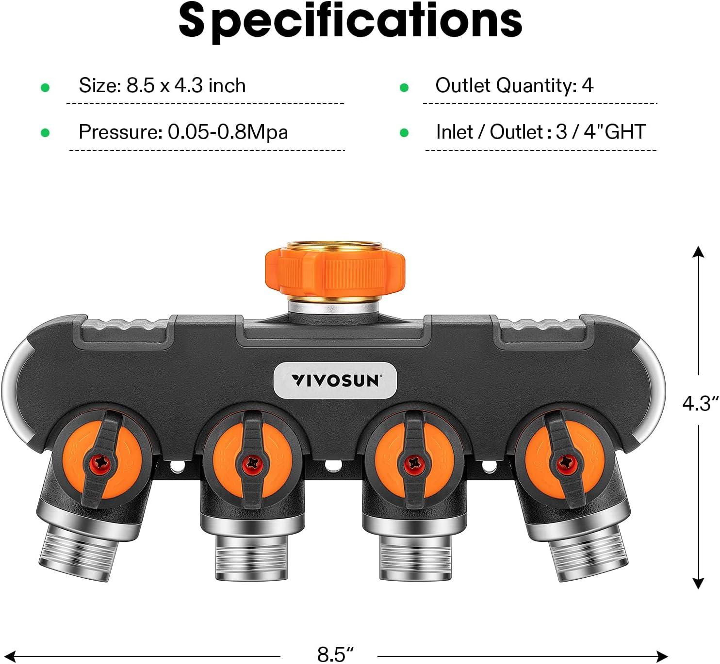 imageVIVOSUN Garden Hose Splitter 2 Way Heavy Duty Upgraded Highly Durable Dual Water Hose Connector Faucet Adapter with Comfortable Rubberized Grip for Drip Irrigation Lawns4 Way