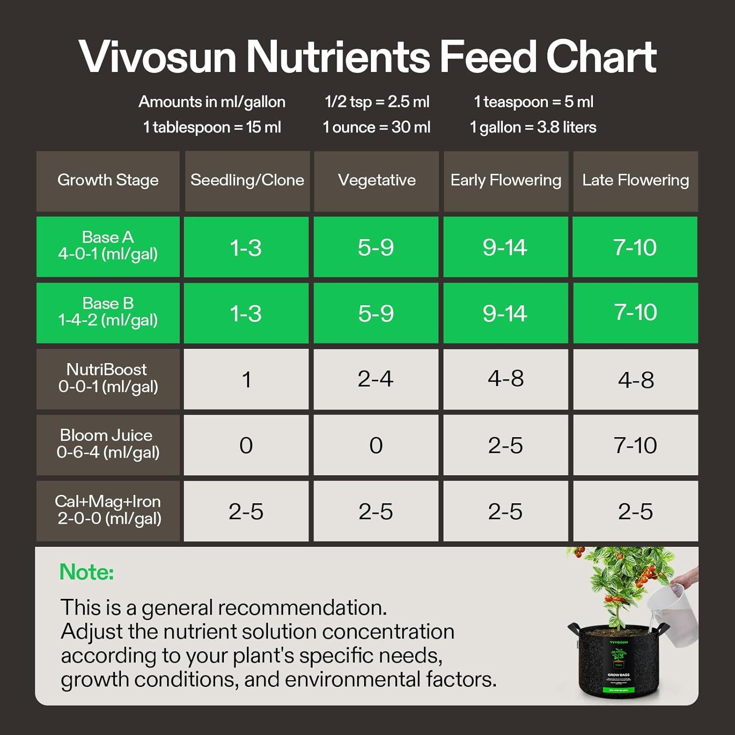 The Perfect Combination: Vivosun nutrients base A & B are two-part, concentrated, holistic formulas that provide complete macro and micronutrients for plant growth; They can be used from the vegetative stage to the end of flowering