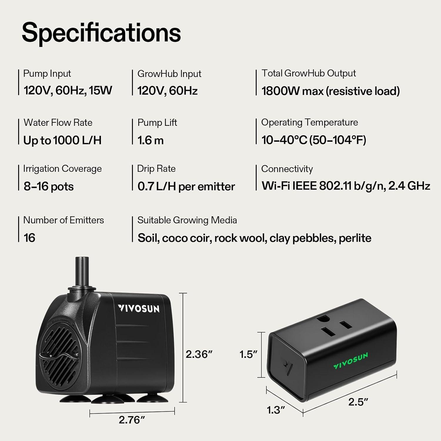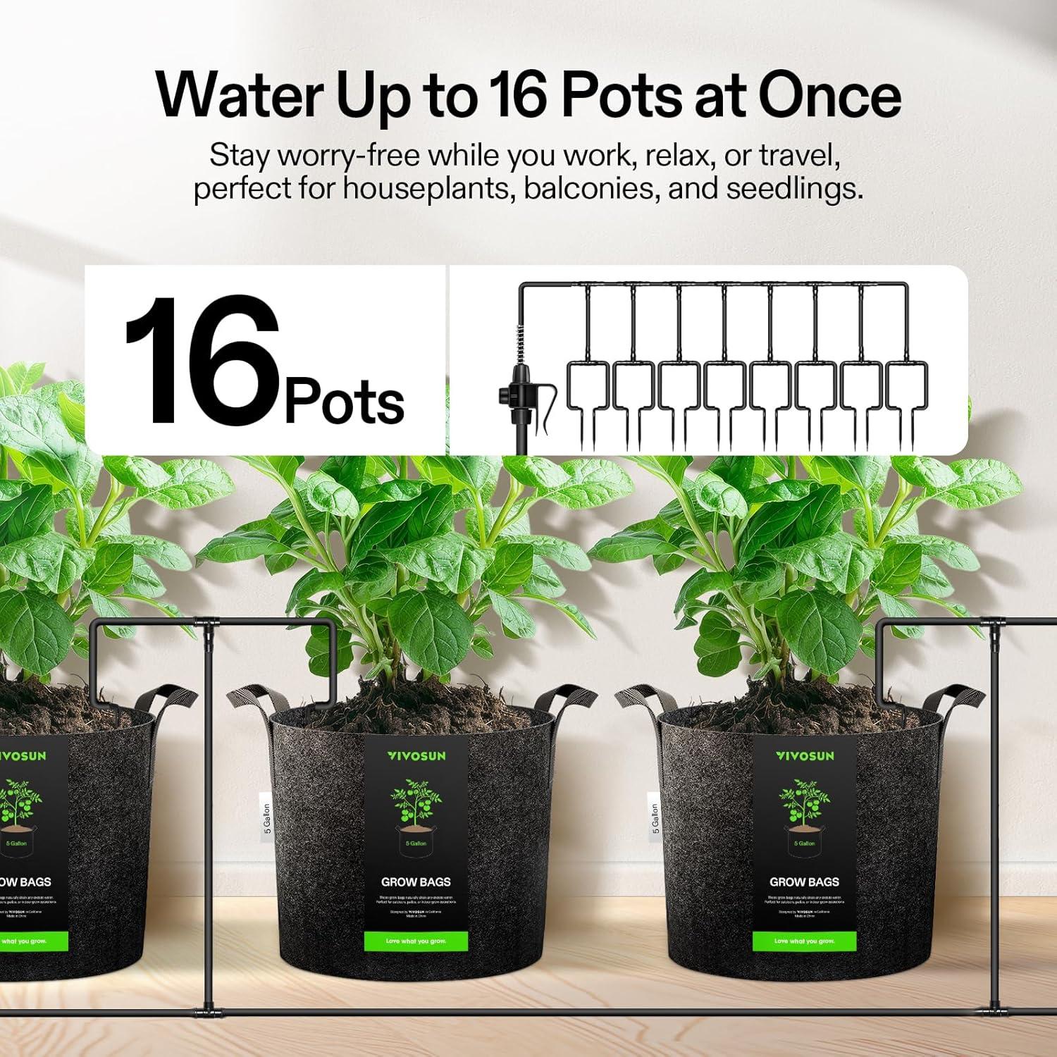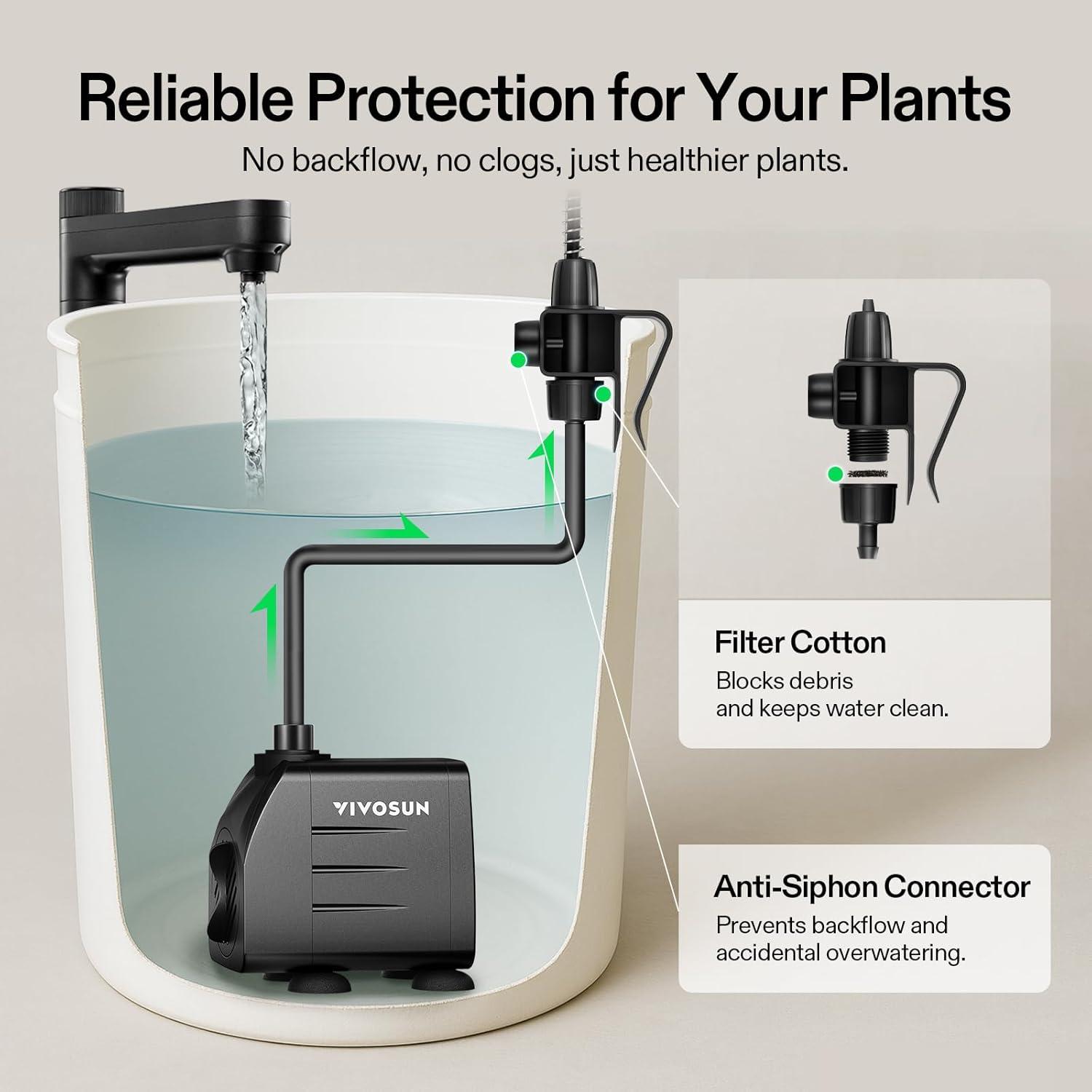 Low Noise & High Yield: 15W submersible pump with a maximum water flow of 1000L/H, low noise level of 30-40dB when irrigating; Automatic irrigation is more convenient and efficient than manual irrigation, faster plant growth and higher yield