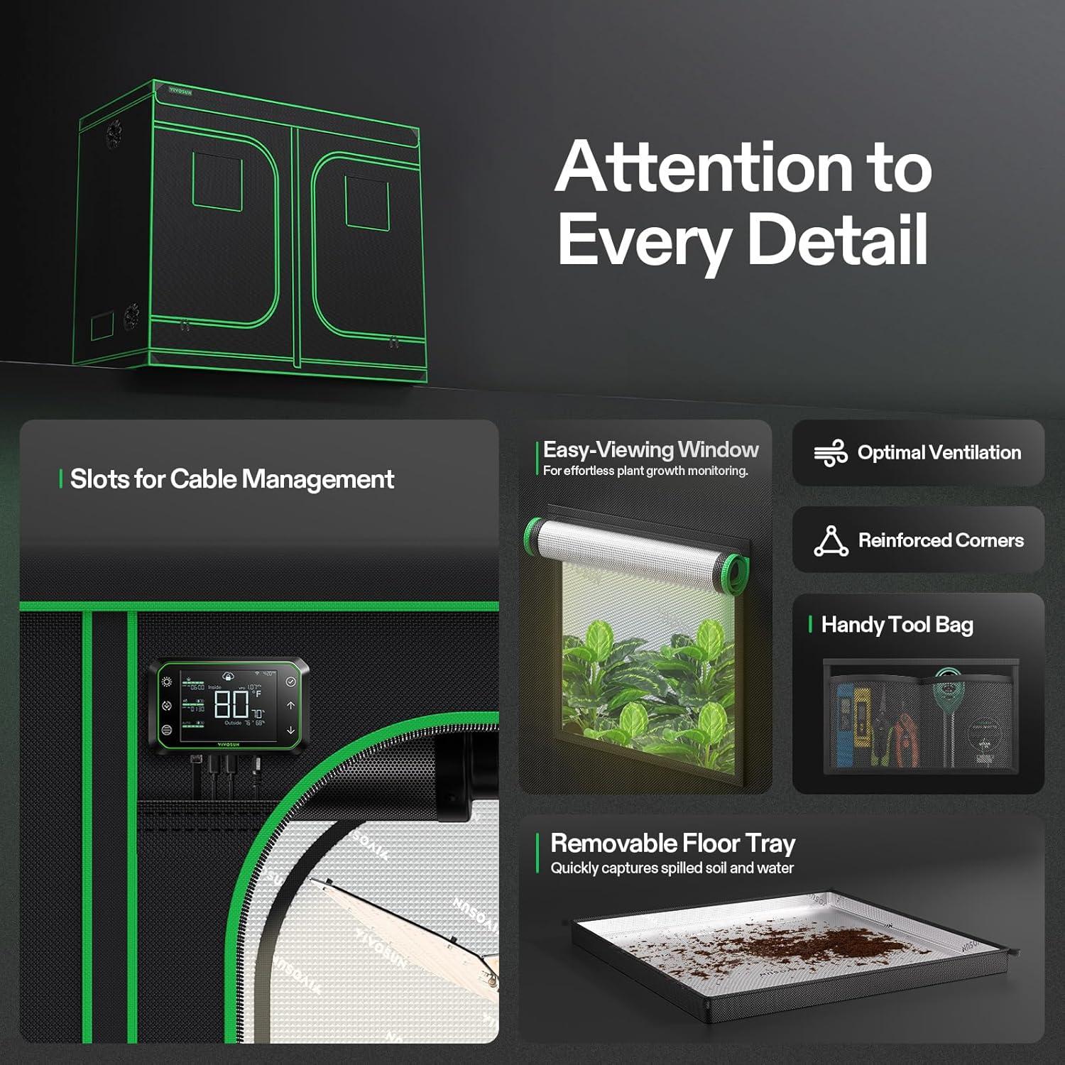 Easy Observation & Maintenance: With a visible window made by transparent plastic set on the grow tent, you can check the growth status of your plants at any time; The window at the bottom is helpful for heat dissipation; The hook and loop fasteners on the cover of the window are easier for you to open and observe inside; It is also equipped with a removable floor tray that is convenient to be cleaned and conserved
