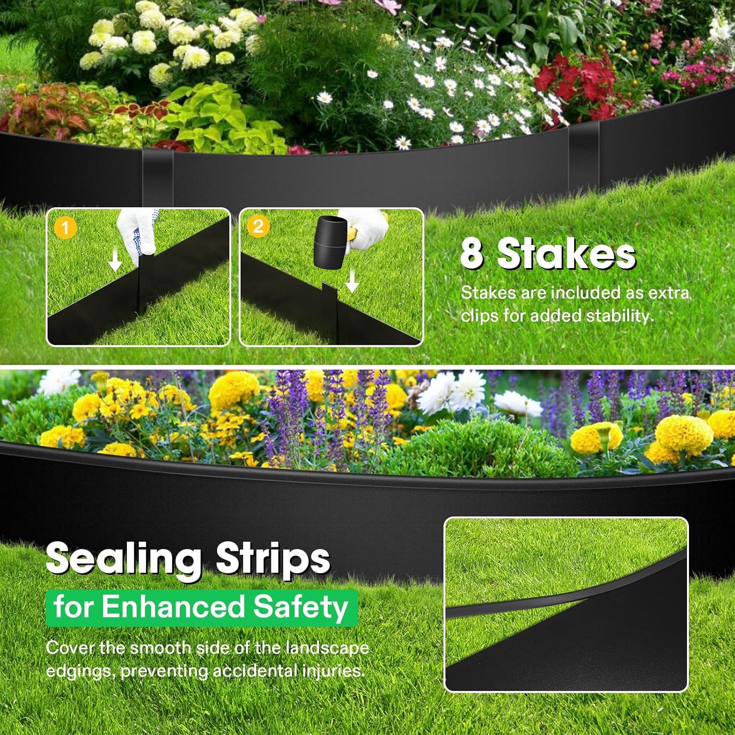 Flexible & Bendable: This steel garden edging features exceptional flexibility, allowing you to easily bend it to conform to the curved contour of your lawn, flower beds, or other landscaping elements; Its toughness ensures that it can maintain its shape consistently